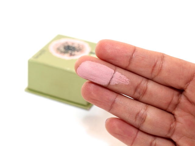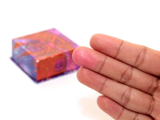 A pink with gold shimmer. It can look a little intimidating in the pan, but when applied, it can offer a sheer wash of colour for a natural flush. The pigmentation is quite strong, so you only need a light hand.