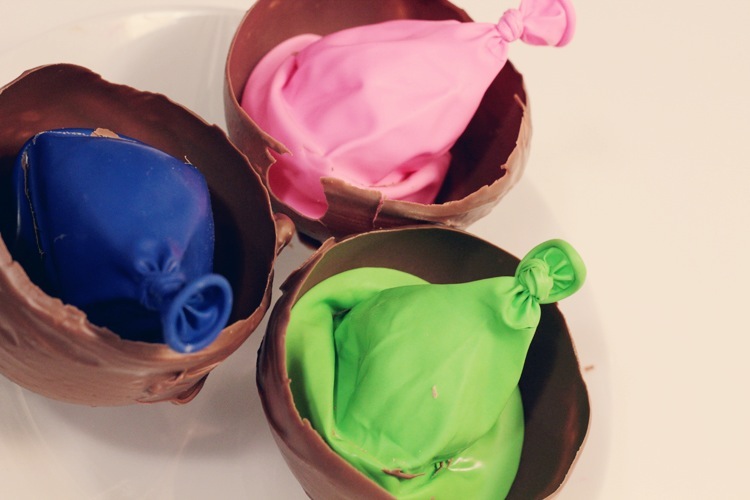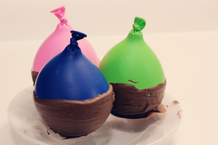 Balloons may seem like a curious cooking tool, but they make the perfect chocolate bowl shape. They're really easy to peel off once they've been deflated and the chocolate has cooled in the fridge.