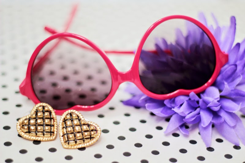 Let's start with some heart shaped accessories. I've been loving these sunglasses I found at Winners. I stumbled upon them in the children's section. I was actually creeping the Hello Kitty aisle when I spotted these sunnies. They were a cool $3.99. I'm not going to lie... these were wholeheartedly enabled by Taylor Swift's new music video, 22.