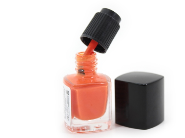 The packaging/size reminds me of the Max Factor mini polishes! The colour looks lovely on your nails and really complements your skin tone :) Very summery, happy and bright. And your nails are perfectly painted!