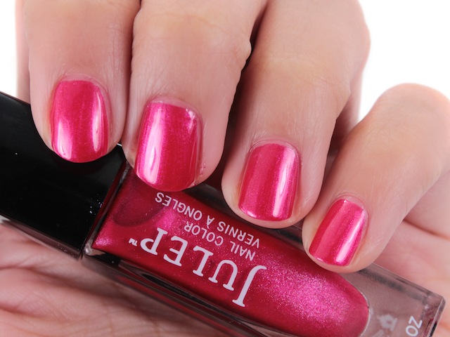 Let's start with the polishes included in the box. First, the polishes came neatly boxed in thin cardboard packaging. I love that the bottles now come with "swatch" stickers on the lids -- it's a great way to see the colours when they're stored away.